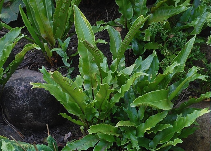 velegnet til at vokse i et stenbed, hvor den med sine brede, blanke blade
