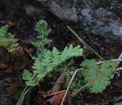 blade og bladstængler med lysebrune hår og skæl nederst.