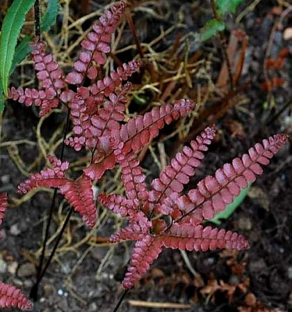 ligner fuglefodsbreg- nen, Adiantum pedatum, men er ikke hårdfør